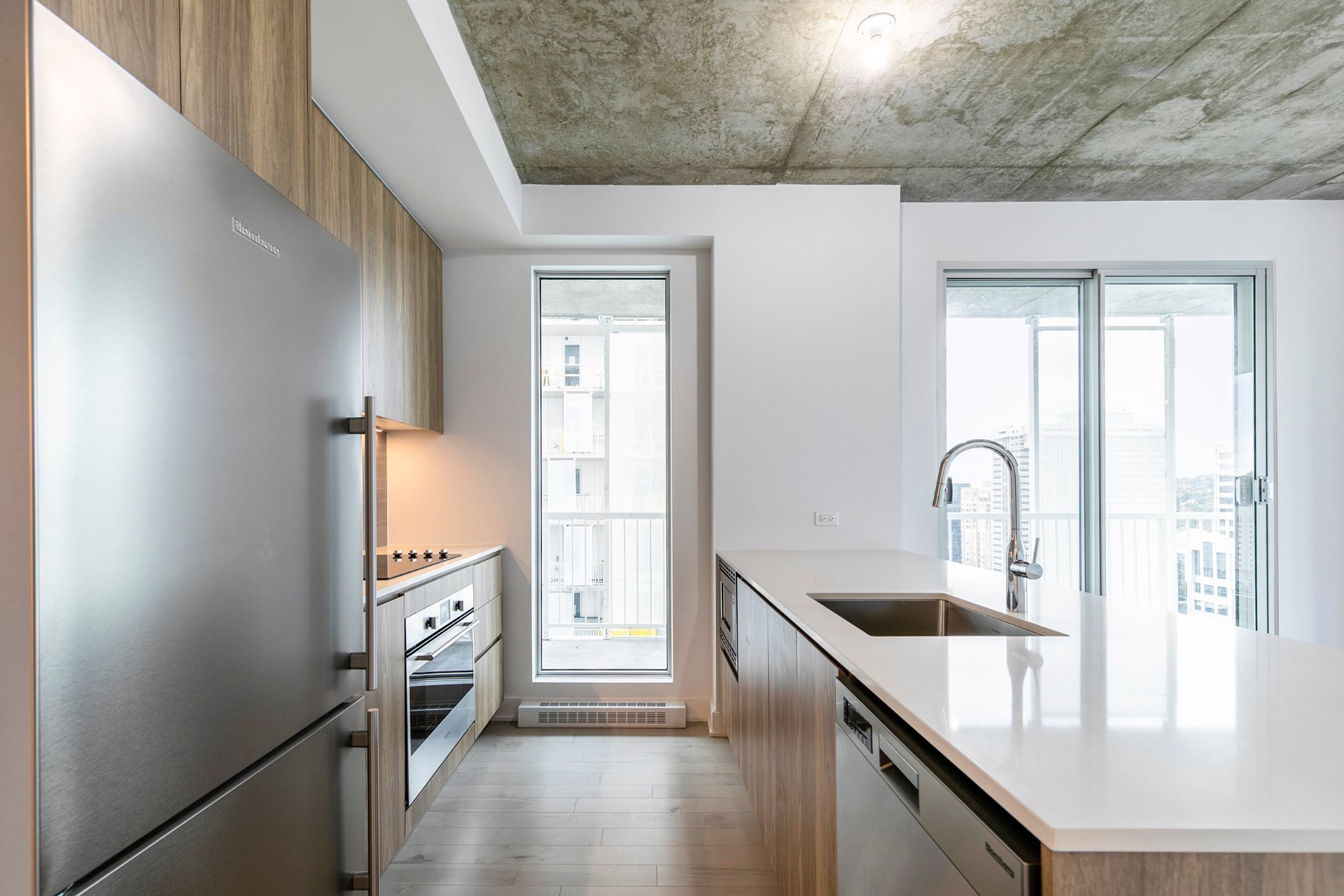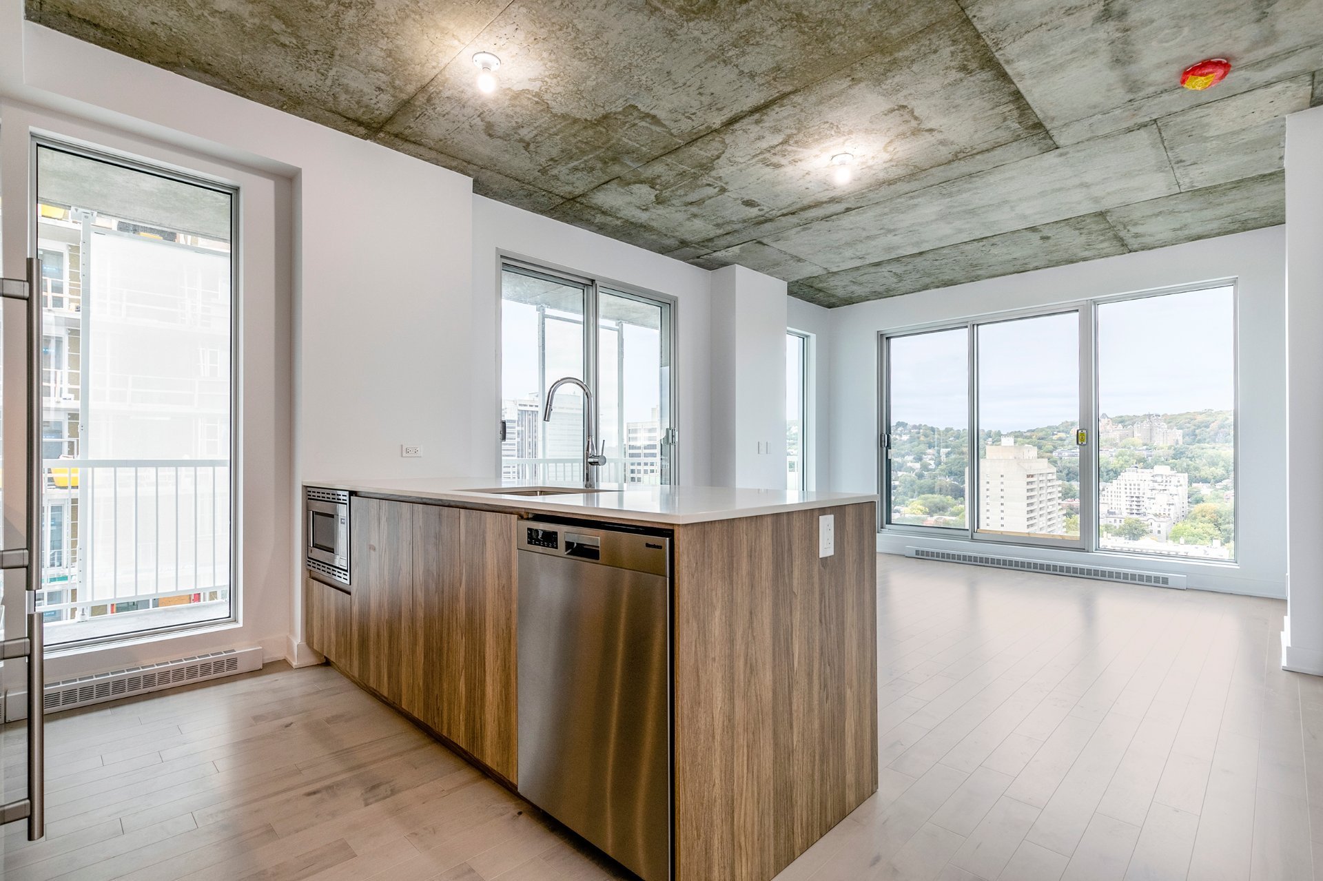 *** Occupation immédiate *** Unité de coin située au 24e étage au coeur de Montréal, offrant une superficie habitable de 806 pieds carrés. Elle comprend 2 chambres, 1 salle de bain, 1 salle d'eau, ainsi qu'une cuisine ouverte sur le salon et la salle à manger, donnant accès à un grand balcon. Le condo EST WEST est idéalement situé au centre-ville, avec un accès facile aux transports en commun, aux magasins, aux boutiques et aux restaurants.