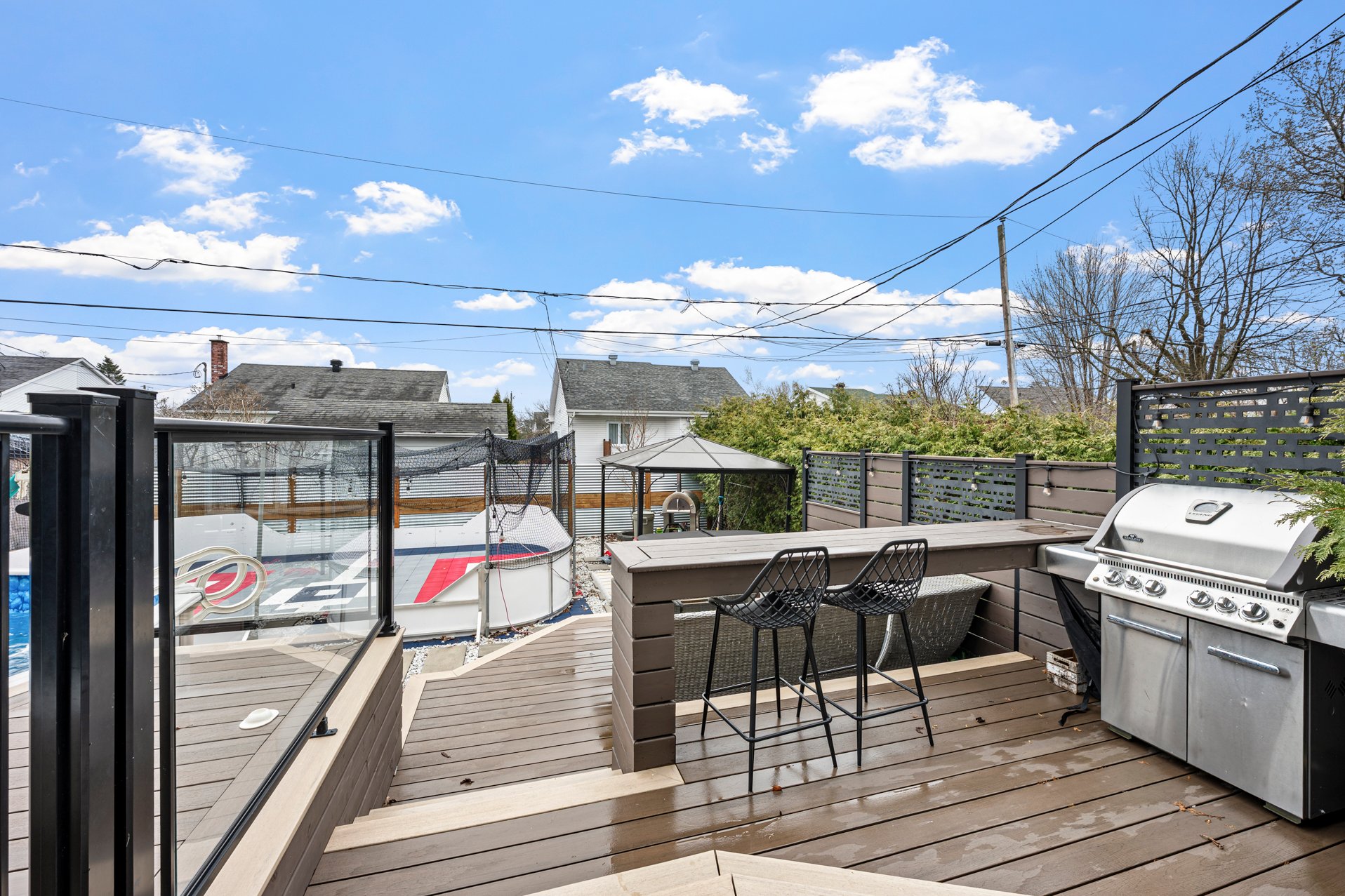 string(95) "Patinoire extérieur, rideau et pôle chambre des maîtres, congélateur,BBQ et four à pizza. "