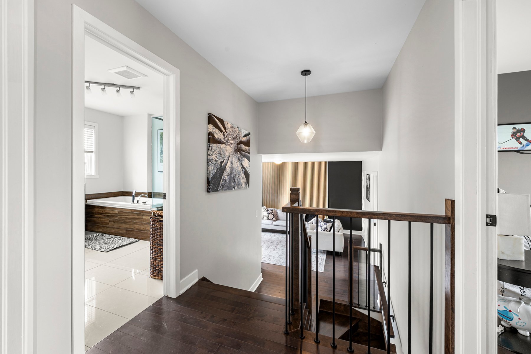 Superbe maison située dans un quartier familial recherché de Chambly, près des parcs, écoles et services. Bien entretenue, elle a bénéficié d'améliorations de qualité, dont un patio en composite et un foyer au gaz au salon. Le rez-de-chaussée offre un vaste hall d'entrée et une aire ouverte lumineuse regroupant cuisine, salle à manger et salon, avec planchers de bois. À l'étage, trois chambres, dont une grande chambre principale avec walk-in. Le sous-sol comprend une chambre supplémentaire avec walk-in en cèdre et une salle de bain complète. Une propriété clé en main idéale pour la famille.